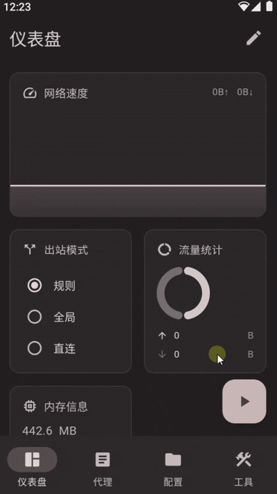 导入成功 FlClash 底部菜单会自动添加【代理】菜单。